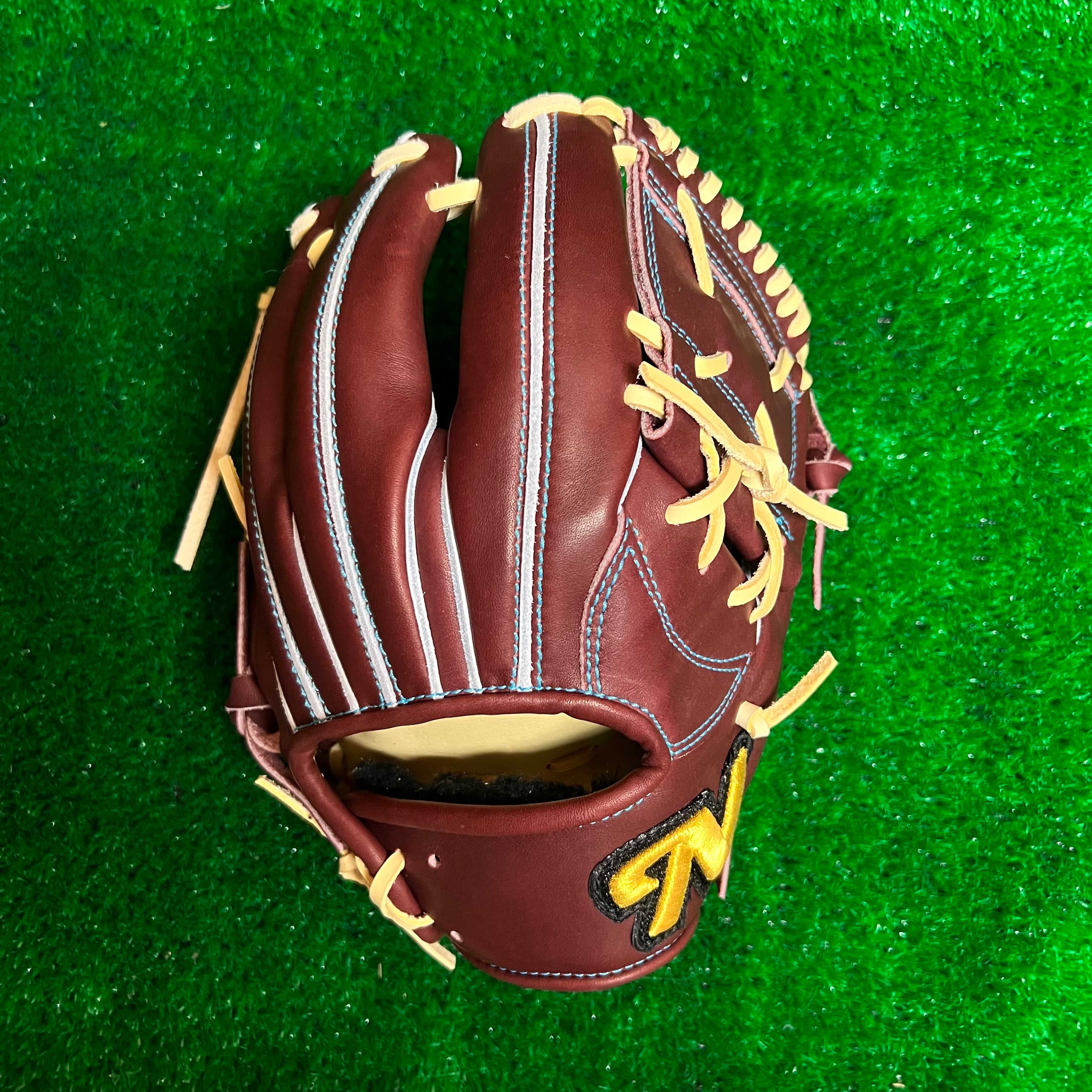 レッドブラウンのレザーを使用した限定グラブです。