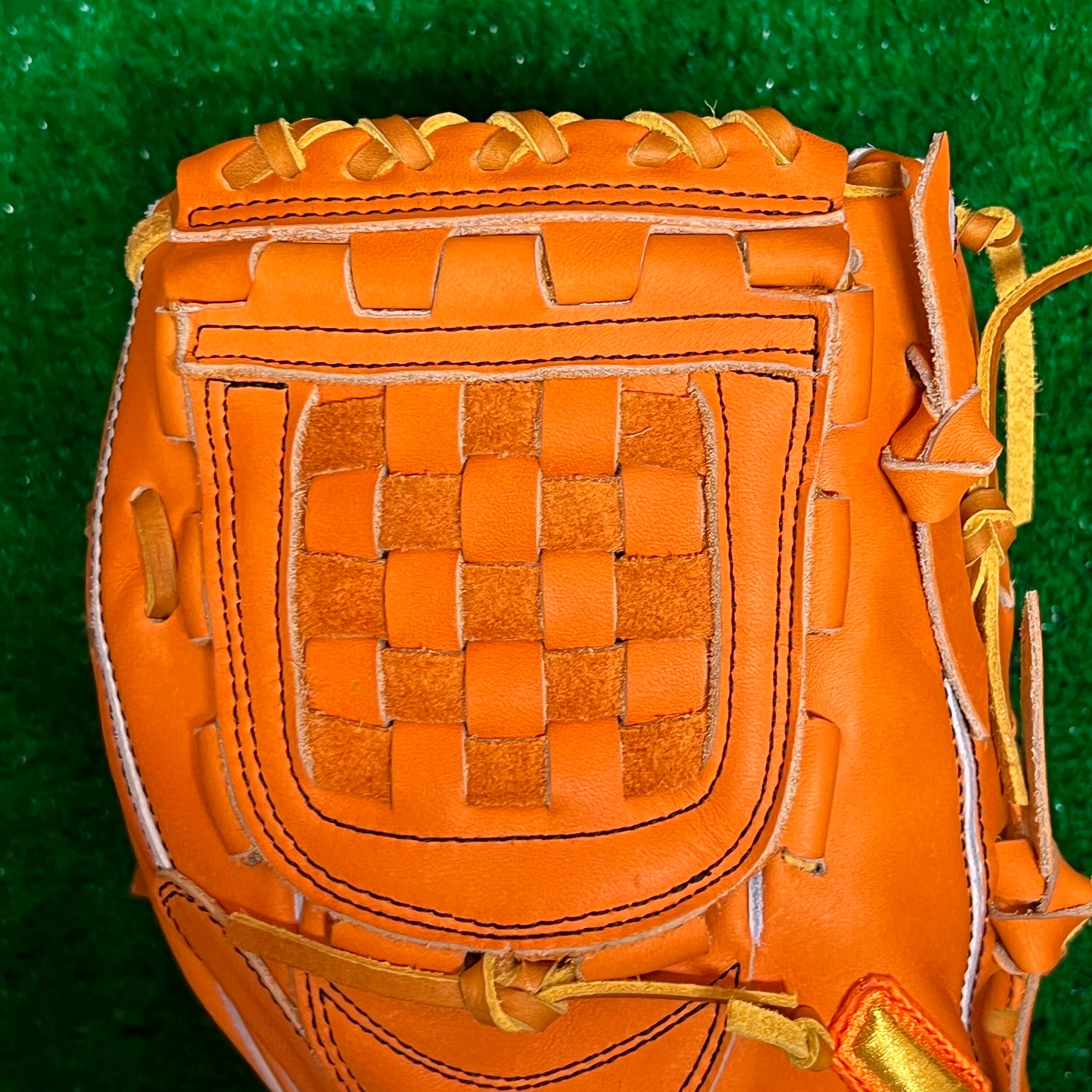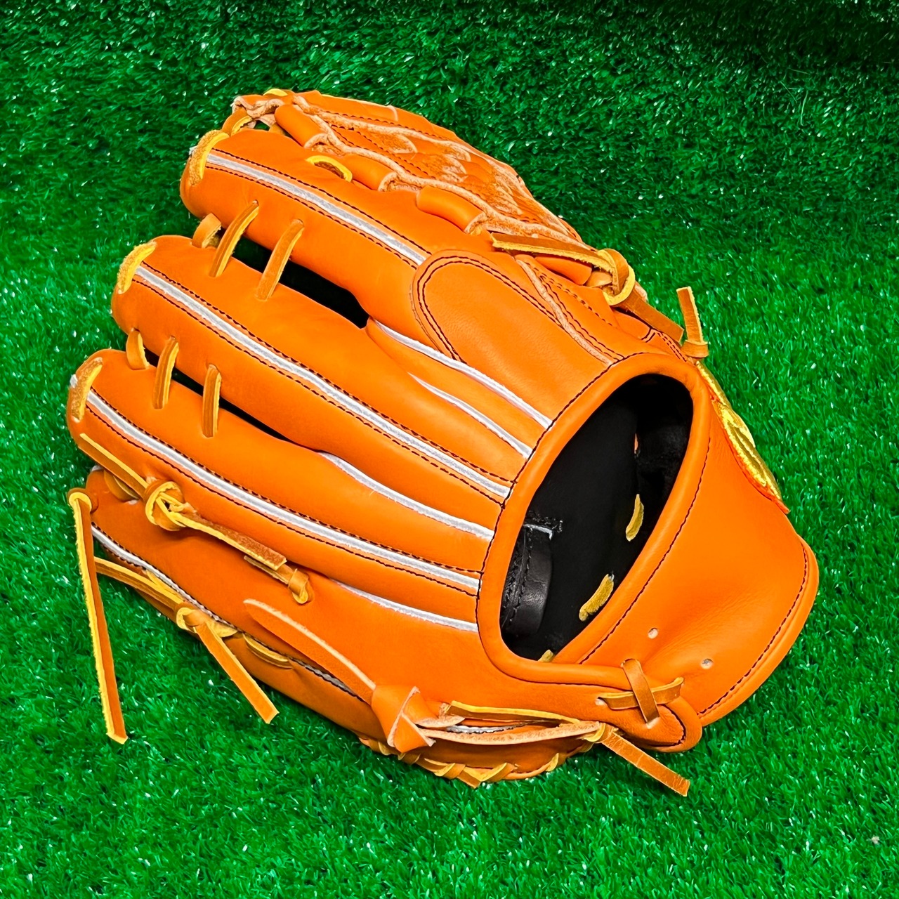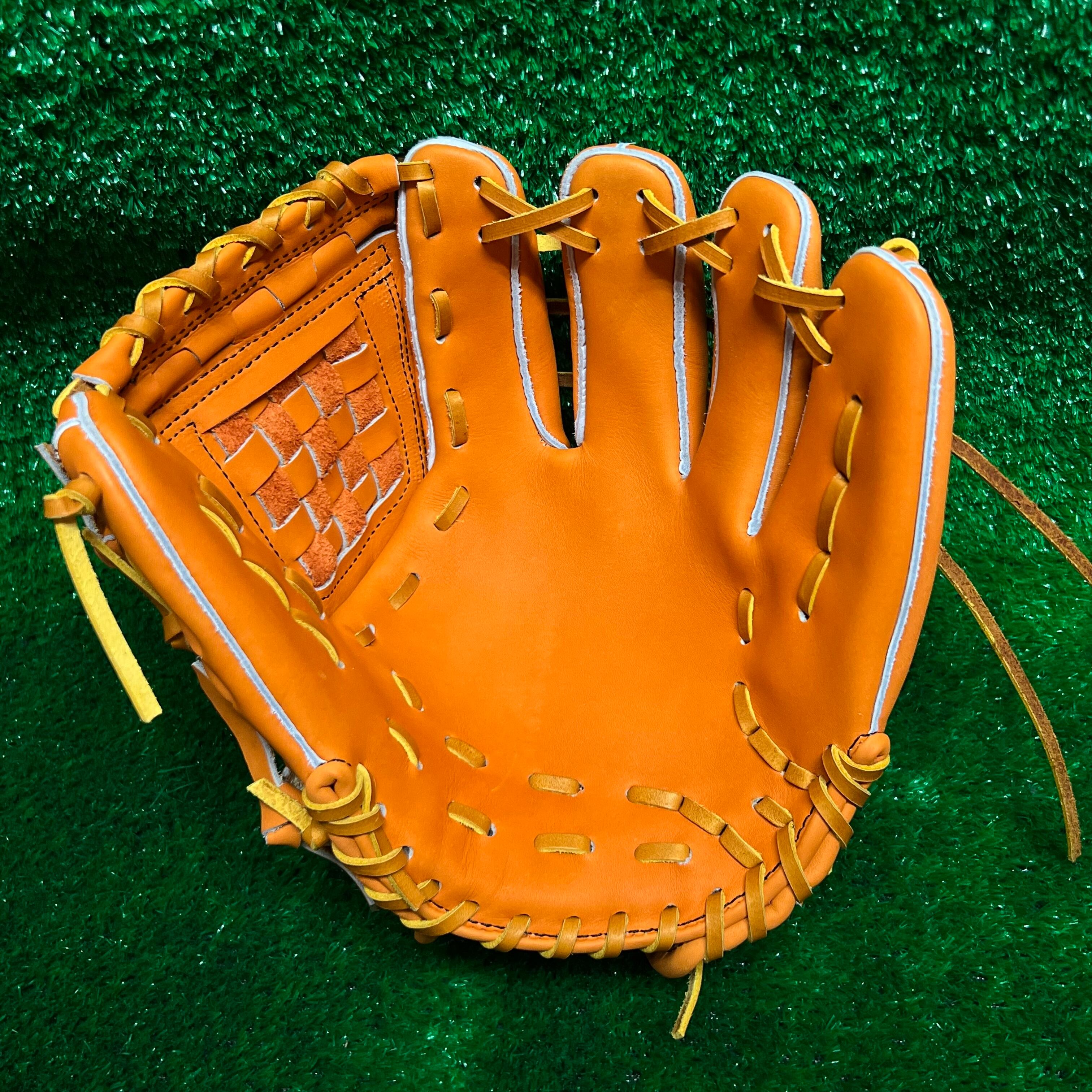NXS-2046型をベースに革の厚さを少し厚くしガッチリした作りに仕上げ、こだわりの薬指リング、背面紐通しを追加したグラブです。